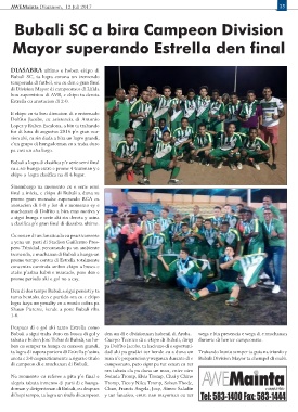 anota e 2-0 cu practicamente a sigura e titulo man n’e preparacion y weganan durante di e Bubali Division Mayor ta ehempel di esaki.