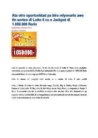 rebendedo, cumpra bo ticket di Lotto 5 pa solamente Fls. 4,- y gana e jackpot di 1.050.000 florin