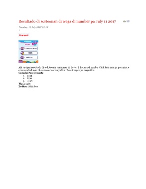 Aki ta sigui resultado di e diferente sorteonan di Lotto, E Loteria di Aruba. Click lesa mas pa por mira e