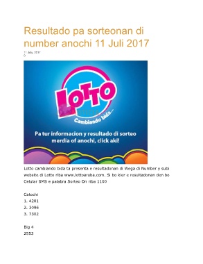 website di Lotto riba www.lottoaruba.com. Si bo kier e resultadonan den bo
