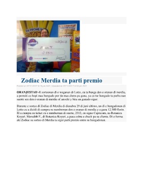 aki Zodiac su sorteo di Merdia ta sigui parti premio entre su hungadonan.