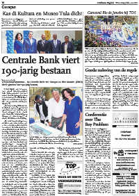 De Centrale Bank heeft in de Matroos-Lasten een taart aan en werd het glas geheven op de toe- Onderwijs, Wetenschap, Cul- Tel.: 747-1810 / 660-2939