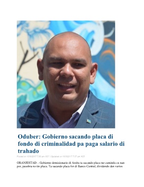 ORANJESTAD – Gobierno demisionario di Aruba ta sacando placa tur caminda cu nan