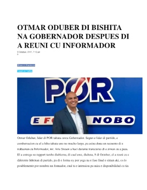 Otmar Oduber, lider di POR tabata cerca Gobernador. Segun e lider di partido, e