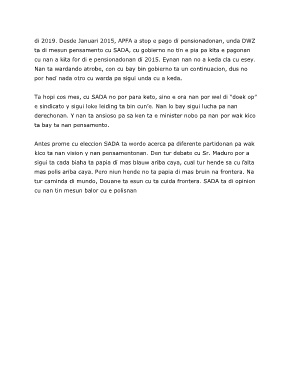 di 2019. Desde Januari 2015, APFA a stop e pago di pensionadonan, unda DWZ