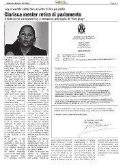 violacion graval di nos mas, Clarisca tambe ta su retiro.