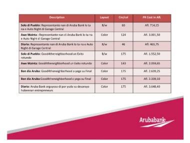 Diario: Aruba Bank orguyoso di por yuda cu desaroyo Color 175 Afl. 3.648,40