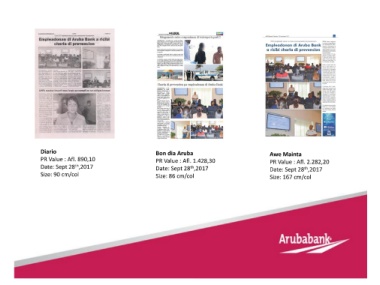 Diario Bon dia Aruba Awe Mainta PR Value : Afl. 890,10 PR Value : Afl. 1.428,30 PR Value : Afl. 2.282,20 th Date: Sept 28 ,2017 Date: Sept 28 ,2017 Date: Sept 28 ,2017 th th Size: 90 cm/col Size: 86 cm/col Size: 167 cm/col