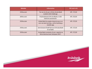 24Ora.com Aruba Bank contento di por a aporta na Afl. 172,50