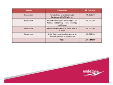 Eso-cur.com Servicio di Self –Servce di Aruba Bank lo Afl. 172,50