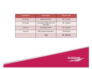 Canal 22 Aruba Bank y MJF . Afl. 1.612,50