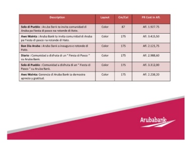 Awe Mainta : Aruba Bank ta invita comunidad di Aruba Color 175 Afl. 3.415,50