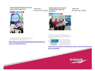 24ora.com 24ora.com PR Cost in Afl. 172,50 PR Cost in Afl. 172,50 http://24ora.com/2017/11/08/aruba-bank-presente-na- top-car-su-big-finish-2017/ http://24ora.com/2017/11/05/aruba-bank-cu-siman-di-celebracion- den-tur-sucursal/