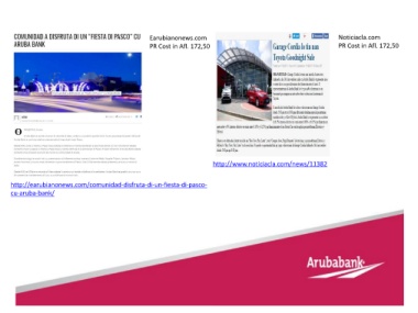 Earubianonews.com Noticiacla.com PR Cost in Afl. 172,50 PR Cost in Afl. 172,50 http://www.noticiacla.com/news/11382 http://earubianonews.com/comunidad-disfruta-di-un-fiesta-di-pasco- cu-aruba-bank/