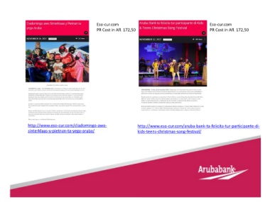 Eso-cur.com Eso-cur.com PR Cost in Afl. 172,50 PR Cost in Afl. 172,50 http://www.eso-cur.com/diadomingo-awo- http://www.eso-cur.com/aruba-bank-ta-felicita-tur-participante-di- sinterklaas-y-pietnan-ta-yega-aruba/ kids-teens-christmas-song-festival/
