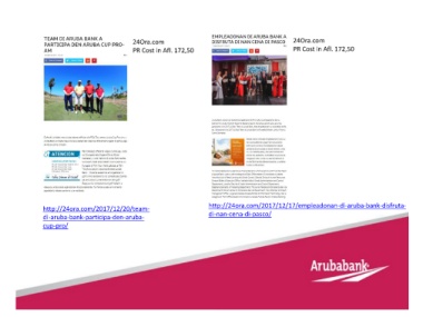 24Ora.com 24Ora.com PR Cost in Afl. 172,50 PR Cost in Afl. 172,50 http://24ora.com/2017/12/17/empleadonan-di-aruba-bank-disfruta- http://24ora.com/2017/12/20/team- di-nan-cena-di-pasco/ di-aruba-bank-participa-den-aruba- cup-pro/