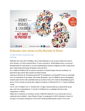 riñon mirando cu ta Dia Mundial di Riñon. E tema e aña aki ta, “Enfermedad di riñon y muchanan”.