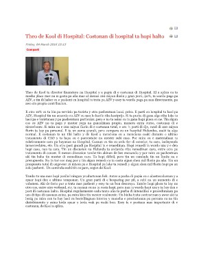 Theo de Kool ta director financiero na Hospital y a papia di e costonan di Hospital. El a splica cu ta