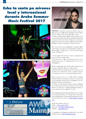 ARUBA su cantante sensacional, Esha, a canta en