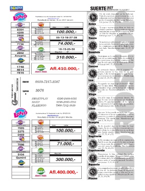 58 x afl 50.00 man aki ta cuminsando. Ta bo dia zodiacal y