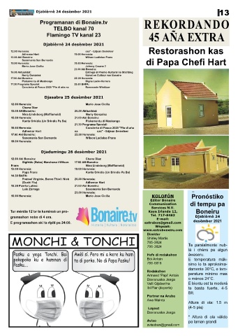 E programashon aki ta ripití pa 24:00. extrabon@gmail.com desèmber 2021