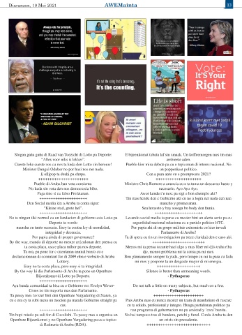 Aya banda comunidad ta bisa cu e Gobierno mr. Evelyn Wever- Do not talk a little on many subjects, but much on a few.