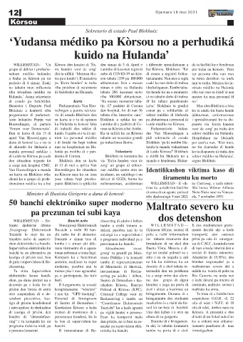 Den su karta di dia 13 di kuido. I tambe si e ta di opi- Ku ta nifiká ku na Kòrsou des Van Houwelingen a sektor médiko na Hulanda.
