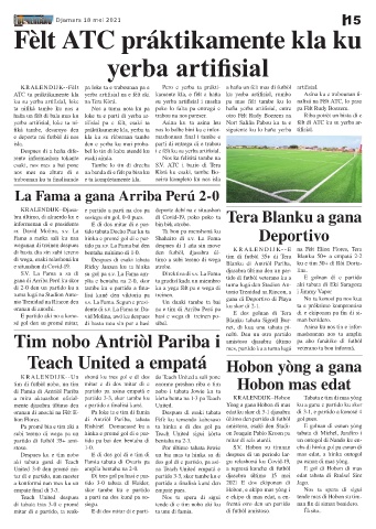 oranan di anochi. dente di s.v. La Fama sr. Da- na e tim di Arriba Perú pa ku skor di 2-1. ta e próksimo kompromiso