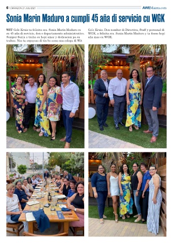 su 45 aña di servicio, den e departamento administrativo. WGK, a felicita sra. Sonia Marin Maduro y ta desee hopi