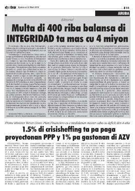 personal a baha, gastonan Di otro banda a cuminsa decisionnan urgente, den destina pa 1.5% pa paga di paga e proyectonan PPP.”