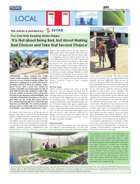 social helper, continues: “At noon we eat to- the need here in Aruba and thus they started Movimiento Misionero Mundial.