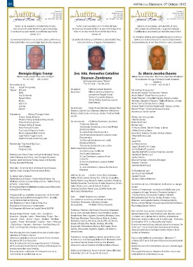 Adress pa condolencia Aurora funeral Home, Diamars di entiero cu lo tuma lugar diabierna 9 di october 2015