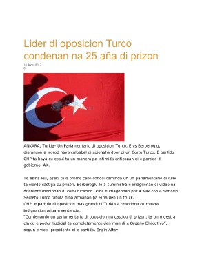 diaranson a worod haya culpabel di spionahe door di un Corte Turco. E partido