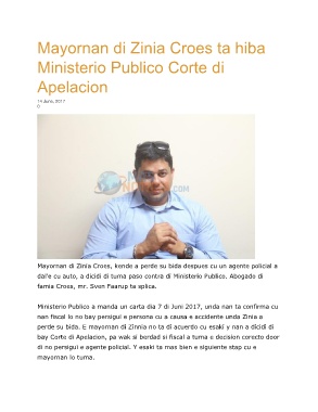 dal’e cu auto, a dicidi di tuma paso contra di Ministerio Publico. Abogado di