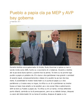 cu awor aki Gobernador tin su tarea di sondea, despues di papia cu tur