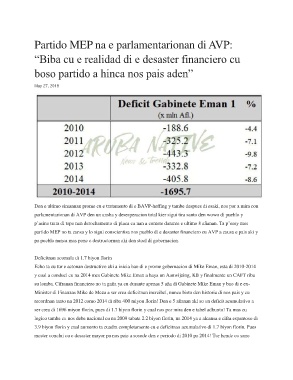 partido MEP no ta cansa y lo sigui conscientisa nos pueblo di e desaster financiero cu AVP a causa e pais aki y