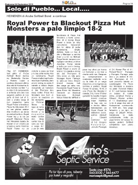 y Ramiro Lopez a riba Arjen Mathilda y den mira acion un rato pero deportivo y el a regresa pa cuadrangular. Pa Pizza