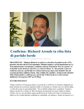 ORANJESTAD – Minister Richard Arends lo ta riba lista di partido berde AVP e