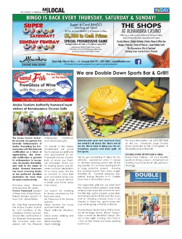 Aruba. Presenting the Am- On behalf of the Aruba we do. We’re here to bring you the at- Down Sports Bar & Grill or Instagram @