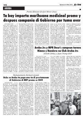 di Gobierno di MEP prome cu 2009 Corsou. Tabata MPR Deco’s himno di Aruba acompaña