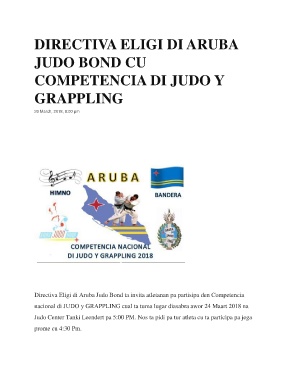 Judo Center Tanki Leendert pa 5:00 PM. Nos ta pidi pa tur atleta cu ta participa pa jega