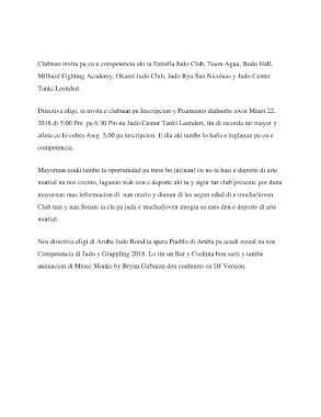 Clubnan invita pa cu e competencia aki ta Estrella Judo Club, Team Agua, Budo Hall,