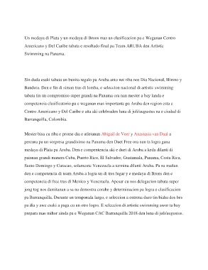 pa dia y awe esaki a paga cu un otro logro. E seleccion di artistic swimming awor ta bay