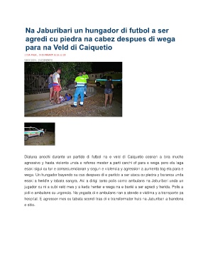 jugador cu ni a subi veld mes y a keda henter e wega na e banki a ser agredi y herida. Polis a