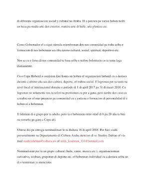 di diferente organisacion social y cultural na Aruba. El a percura pa varios hoben ricibi
