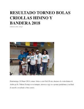 Diadomingo 18 Maart 2018, torneo bolas a start Sali 10 am, despues di a toka himno di