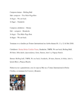 Pabien na tur e ganadornan y nos lo topa na Mei na e Torneo International di Bolas