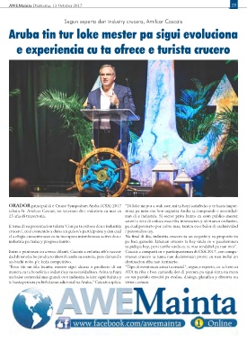 ORADOR principal di e Cruise Symposium Aruba (CSA) 2017 “Di loke mi por a wak awe, mi ta hopi satisfecho y te hasta impre-