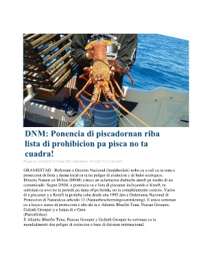 comunicado. Segun DNM, e ponencia cu e lista di piscanan incluyendo e Kreeft, ta