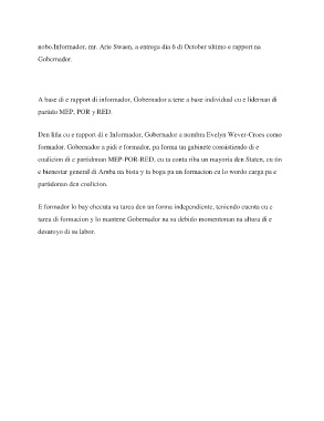 formador. Gobernador a pidi e formador, pa forma un gabinete consistiendo di e